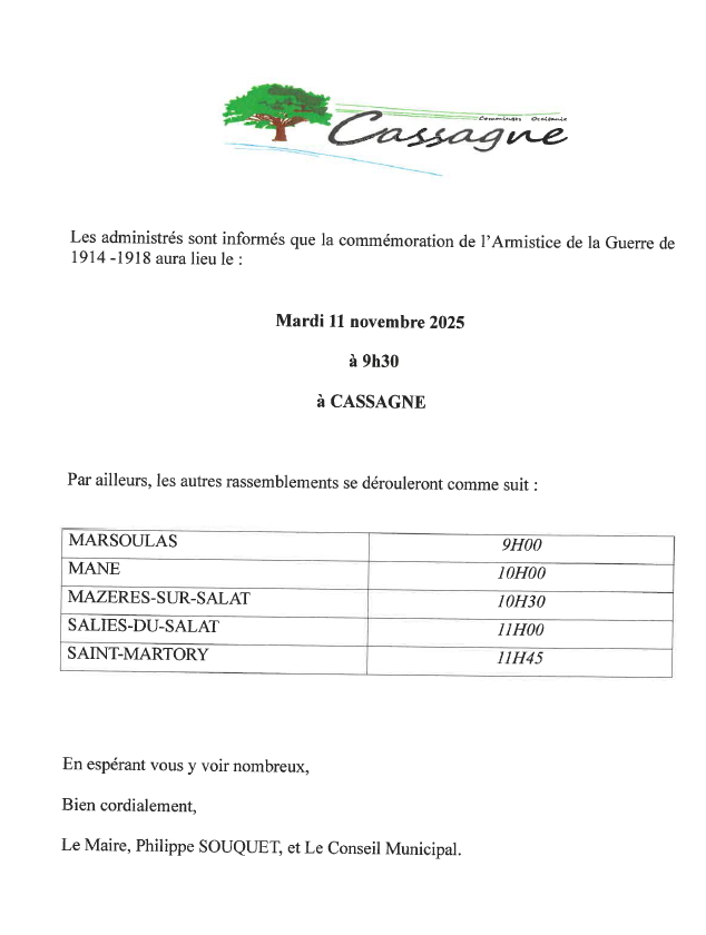 Commémoration de l’Armistice de la Guerre de 1914-1918